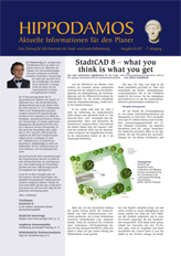 Themen München wechselt zu StadtCAD - 123 Mitarbeiter der Landeshauptstadt auf StadtCAD geschult, von Albert Schultheiß. StadtCAD blüht auf - StadtCAD Flora blüht in diesen Tagen mit seinen neuen Features besonders intensiv, von Fred Tomke Das Jahr 2005 im Überblick - Termine und Events in diesem Jah, von Fred Tomke Ausgleich schaffen - Eingriff- und Ausgleichsbilanzierung mit StadtCAD Hippodamos, von Fred Tomke |
